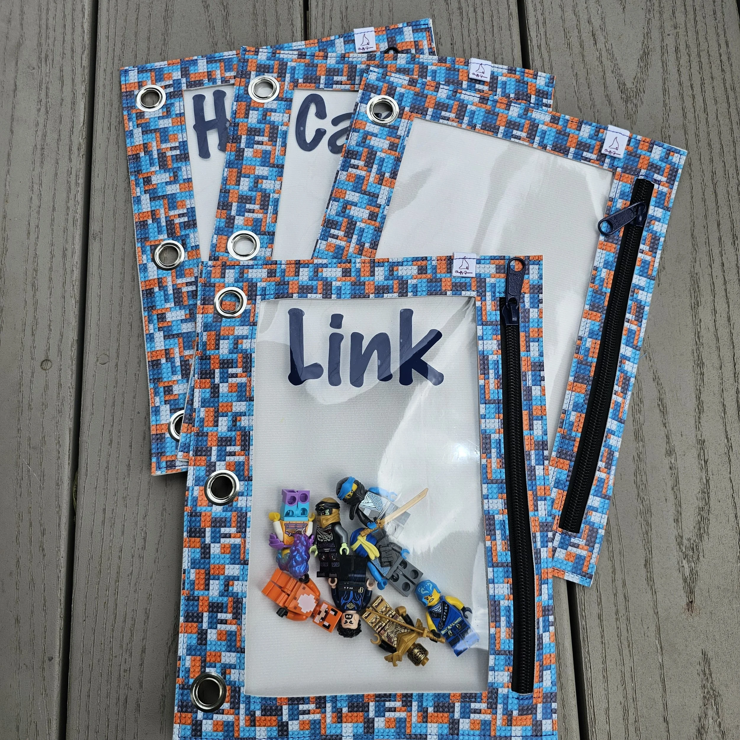 2 building brick pouches are available to ship immediately; if you'd like it personalized please allow an extra 24-48 hours to ship. For a custom, made-to-order pouch, please allow 1-2 weeks. Please send a message prior to ordering to choose and confirm the faux leather/vinyl fabric you'd like to have.